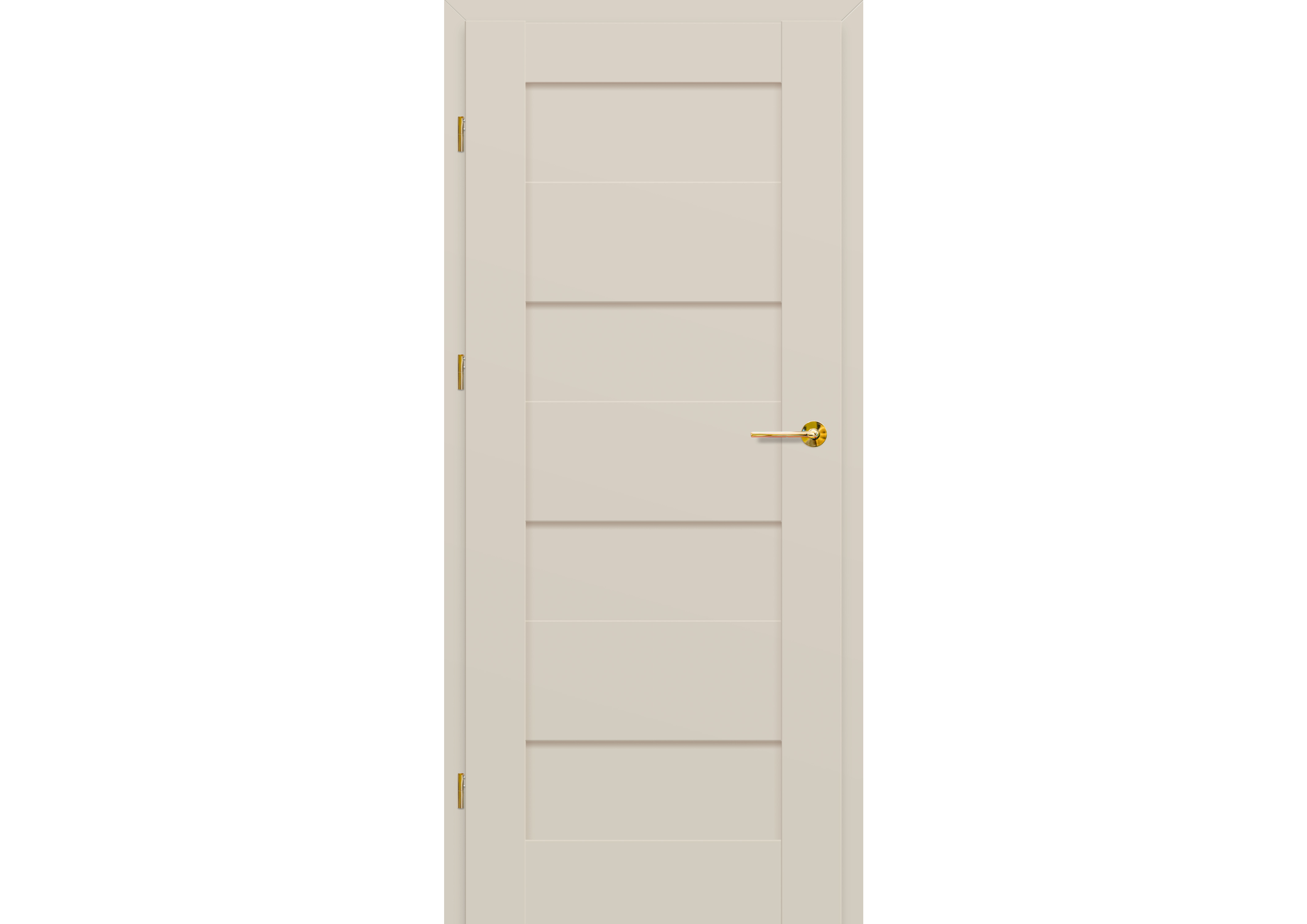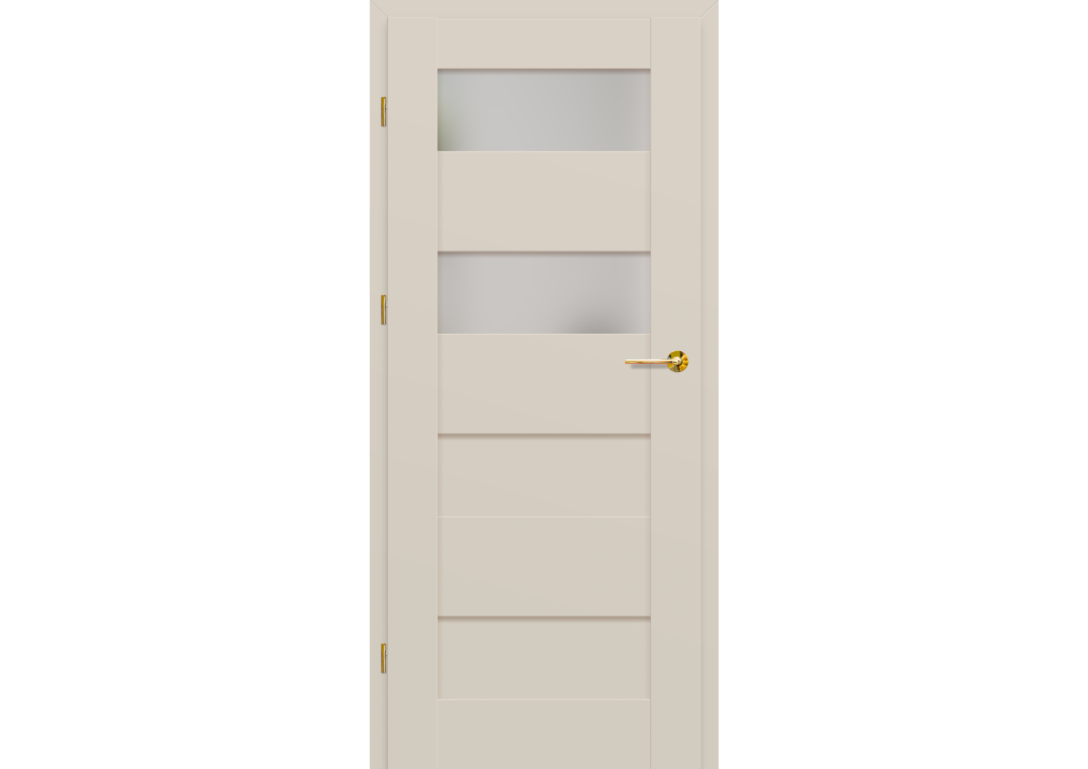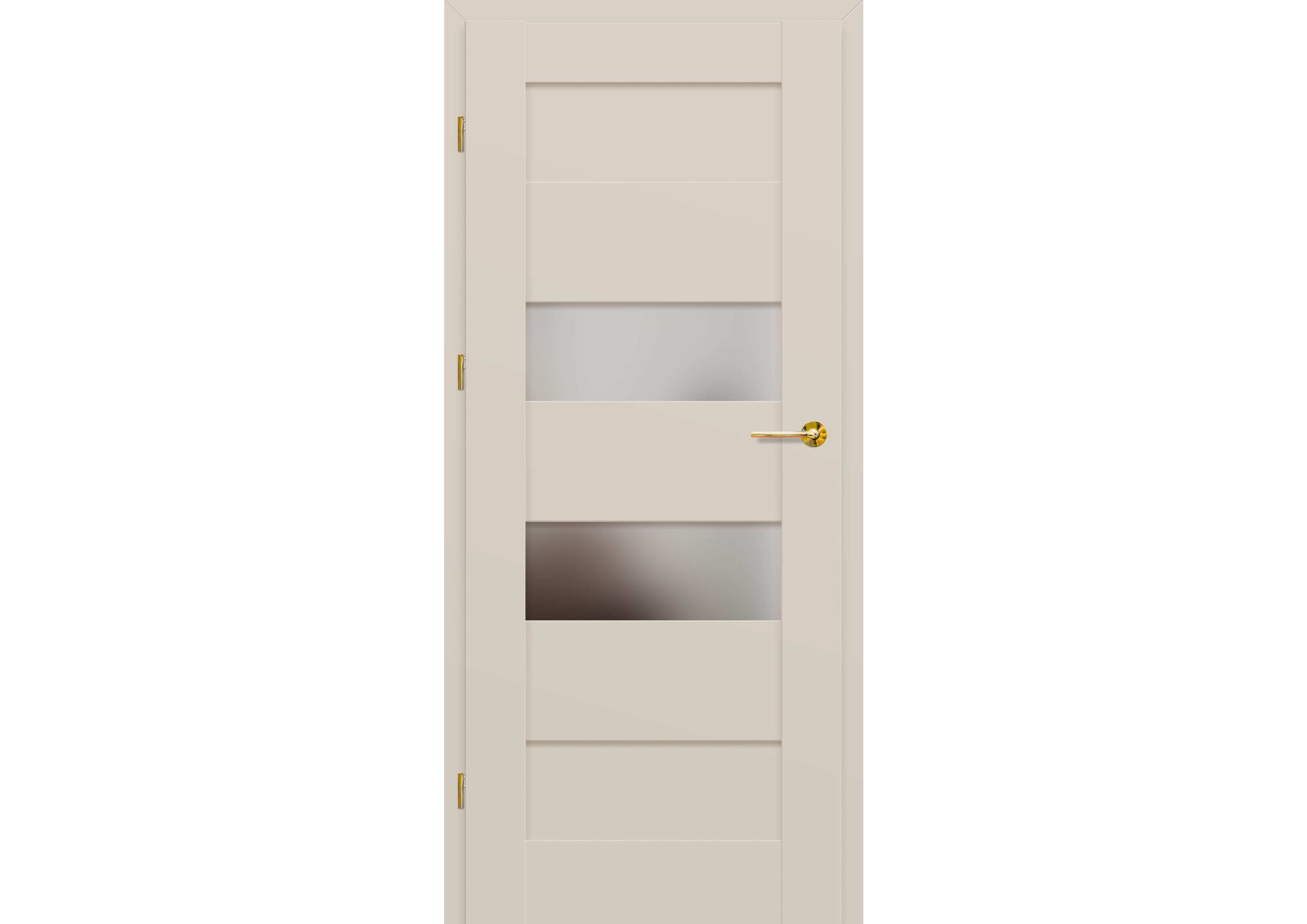 - három ezüst színű (opcionálisan felár ellenében fekete színű) rejtett zsanér a falc nélküli ajtószárnyban, a zsanér az ajtótokkal kerül szállításra és árazásra