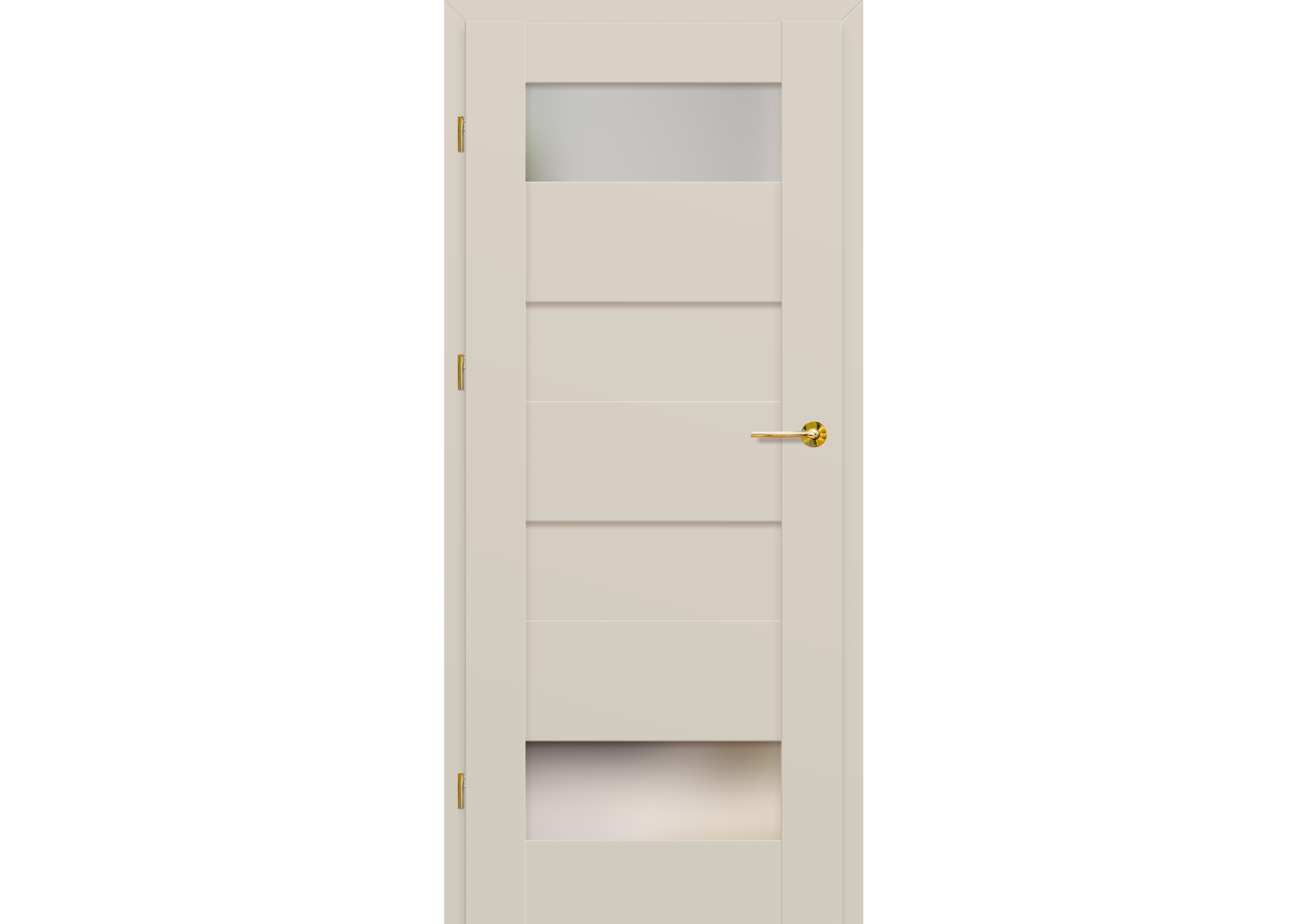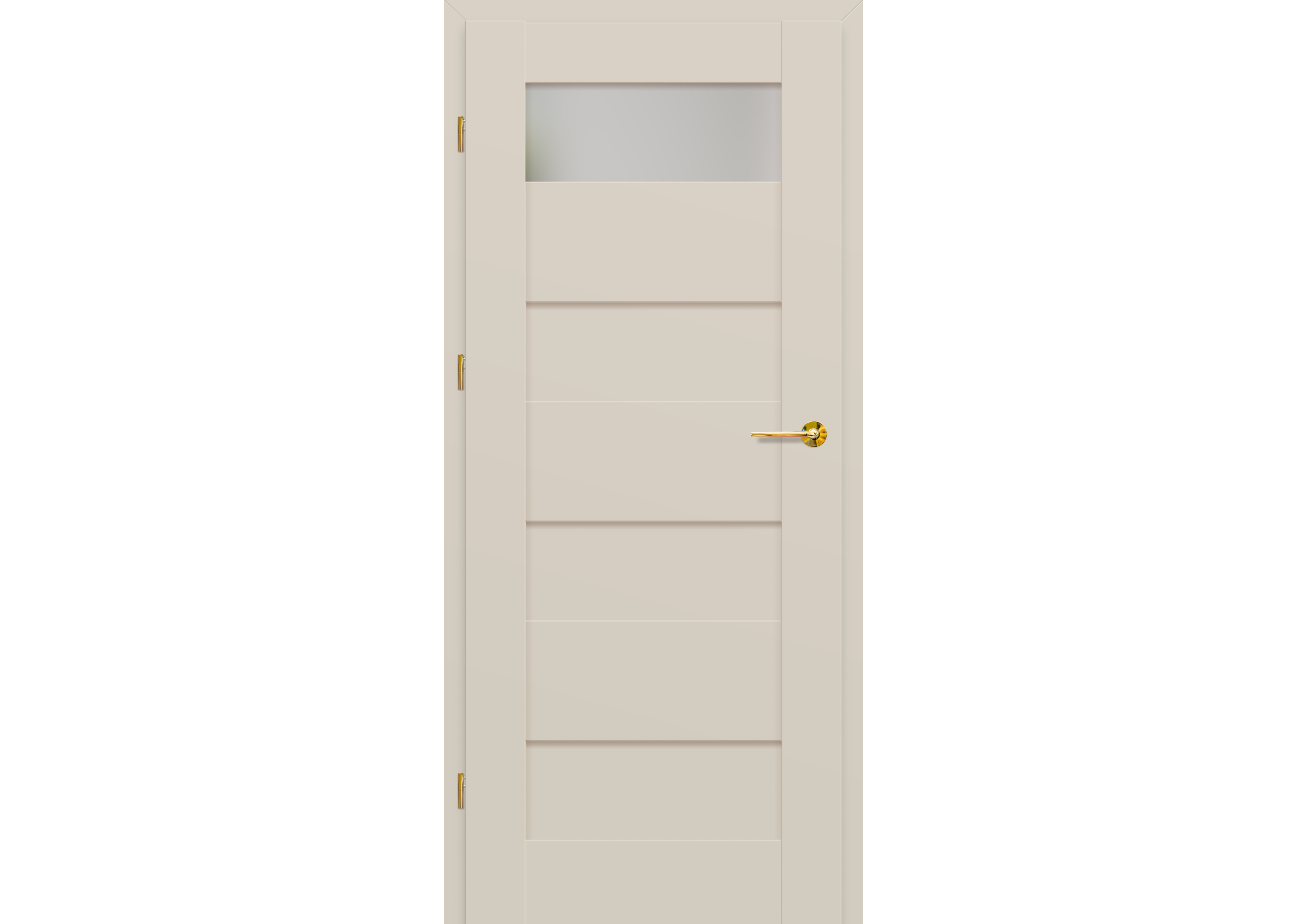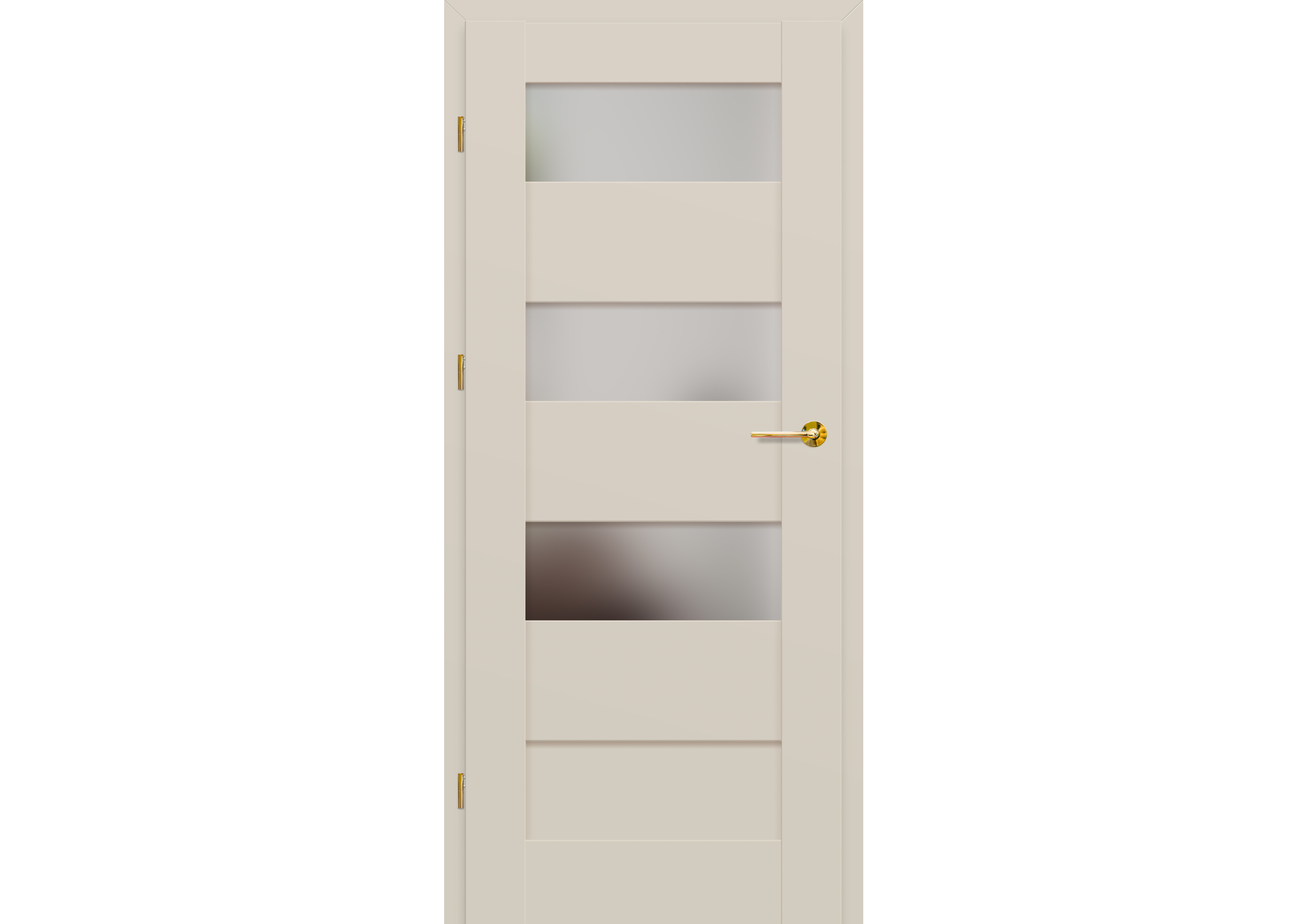 - három ezüst színű (opcionálisan felár ellenében fekete színű) rejtett zsanér a falc nélküli ajtószárnyban, a zsanér az ajtótokkal kerül szállításra és árazásra